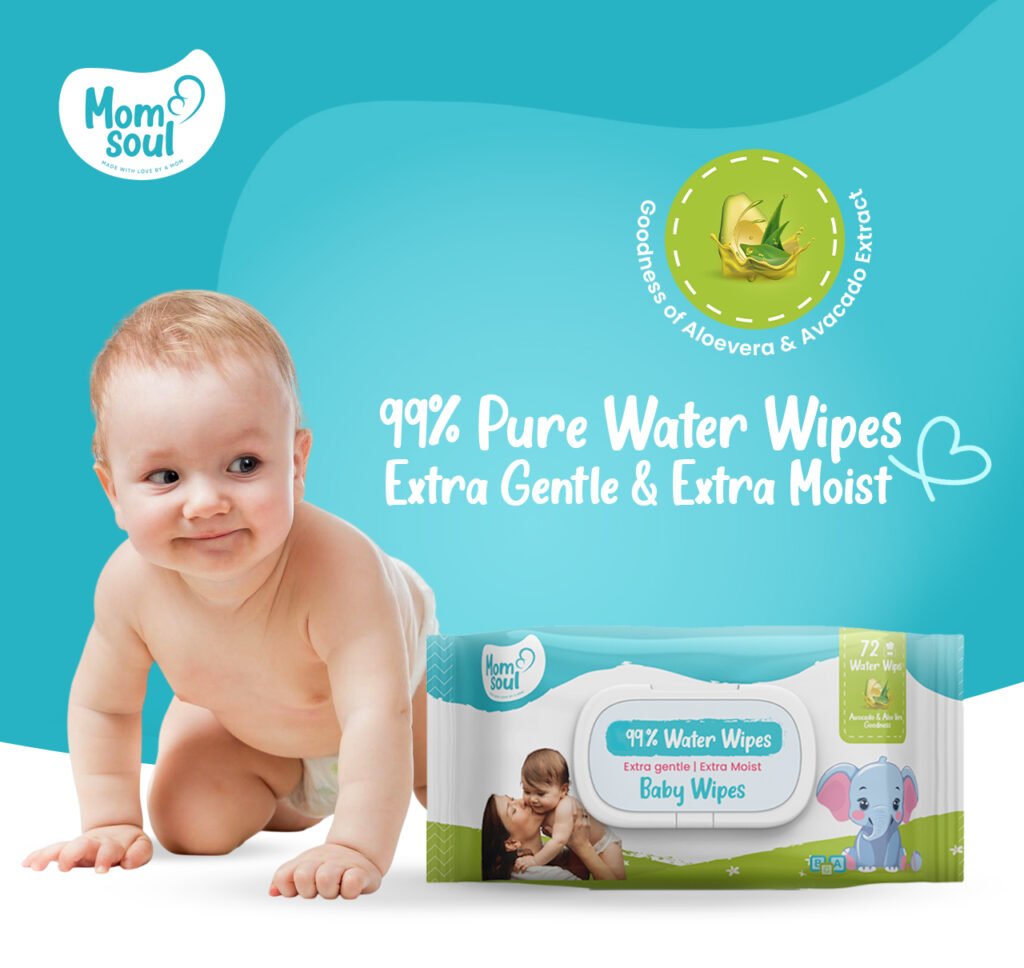 At Momsoul, every wipe is made with love, care, and science — combining 99% pure water with the goodness of natural ingredients to give your baby the gentlest cleansing experience possible.